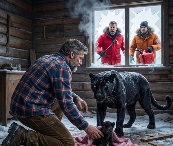 Пантера напряглась. Ее уши нервно дернулись, улавливая малейшие шорохи. Она шумно втянула носом сухой теплый воздух жилья. Затем невероятно аккуратно, одними губами, подхватила детеныша за шкирку и бесшумно переступила порог. Она положила малыша на старый коврик прямо у входа и опустилась рядом, закрывая его своим массивным телом от сквозняка. Она смотрела на человека, не отводя глаз.