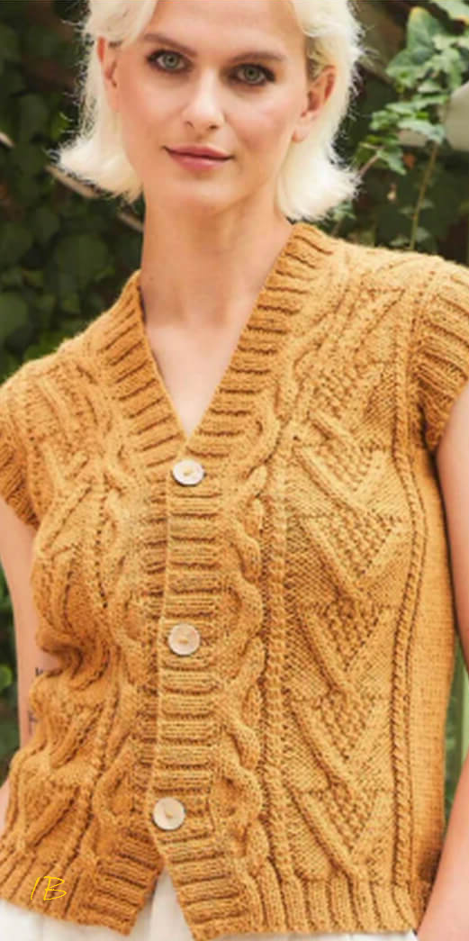 Трикотажный жилет - незаменимая вещь в любом гардеробе. Он остается актуальным уже несколько сезонов подряд, сочетая в себе тепло и стиль. Это изделия способно преобразить образ, придав ему новое звучание. Разнообразие фактур, классических кроев, моделей оверсайз, оригинальных орнаментов и принтов позволяет каждому новому сезону предлагать уникальные варианты вязаных жилетов. Женский жилет с аранами в тёплом горчичном оттенке - воплощение уюта и стиля. Объёмная вязка с выразительными косами создаёт фактурный, но не громоздкий силуэт. V-образный вырез подчёркивает линию шеи, а крупные деревянные пуговицы добавляют нотку ретро. Короткий крой и отсутствие рукавов делают модель идеальной для межсезонья. С чем носить Дополните образ ботинками челси, лоферами или кедами — и получите стильный и комфортный наряд! Этот кремовый вязаный жилет - воплощение утончённой простоты и уюта. Нежная фактура узора создаёт лёгкую текстуру, а свободный крой подчёркивает женственность силуэта. Кремовый отте