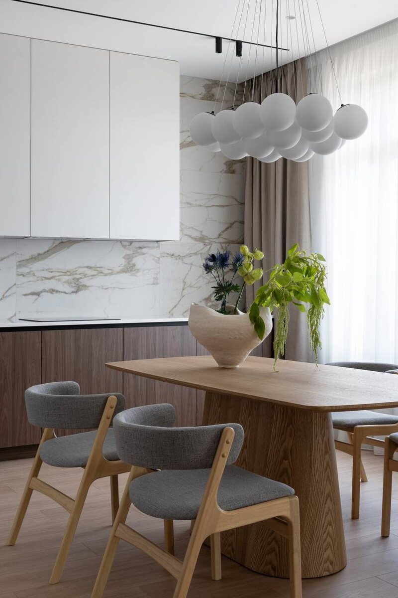 Лаконичный и эстетичный интерьер без лишнего декора построен на качестве и тактильности материалов. Баланс выразительности и бюджета достигли за счёт доступных решений и спокойной светлой палитры — с тёплым деревом, мягким мрамором и матовыми фактурами. В итоге получилось сдержанное, живое пространство, наполненное светом. НАХОДКИ ПРОЕКТА Кухонный стол Маунт Wood - 62 990₽ Стул Джаспер Textile Grey - 10 990₽ Диван модульный Этен 7 - 82 980₽ Журнальный стол Ньюман-2 Black - 25 990₽ Кровать Юна 180 Bucle Silver - 68 990₽ Банкетка Ринт Bucle White - 16 990₽ Журнальный стол Ньюман Beige Glossy - 16 990₽ Стул Нико Velvet Terra - 11 490₽ Пуф Ринт Bucle White - 12 990₽ Авторы проекта: дизайнеры Валентина Черемных и Артем Вечко Автор фото: Маргарита Низамова #дизайн_проект #трешка