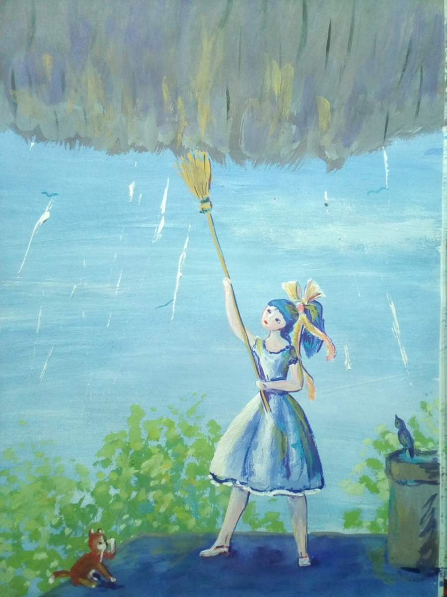 Мигом она спустилась вниз, схватила стоявшую в углу метлу – видимо, дворник забыл убрать, и опять побежала на крышу. Отсюда, с самой высокой крыши в городе, до брюха было рукой подать. Ну или метлой.