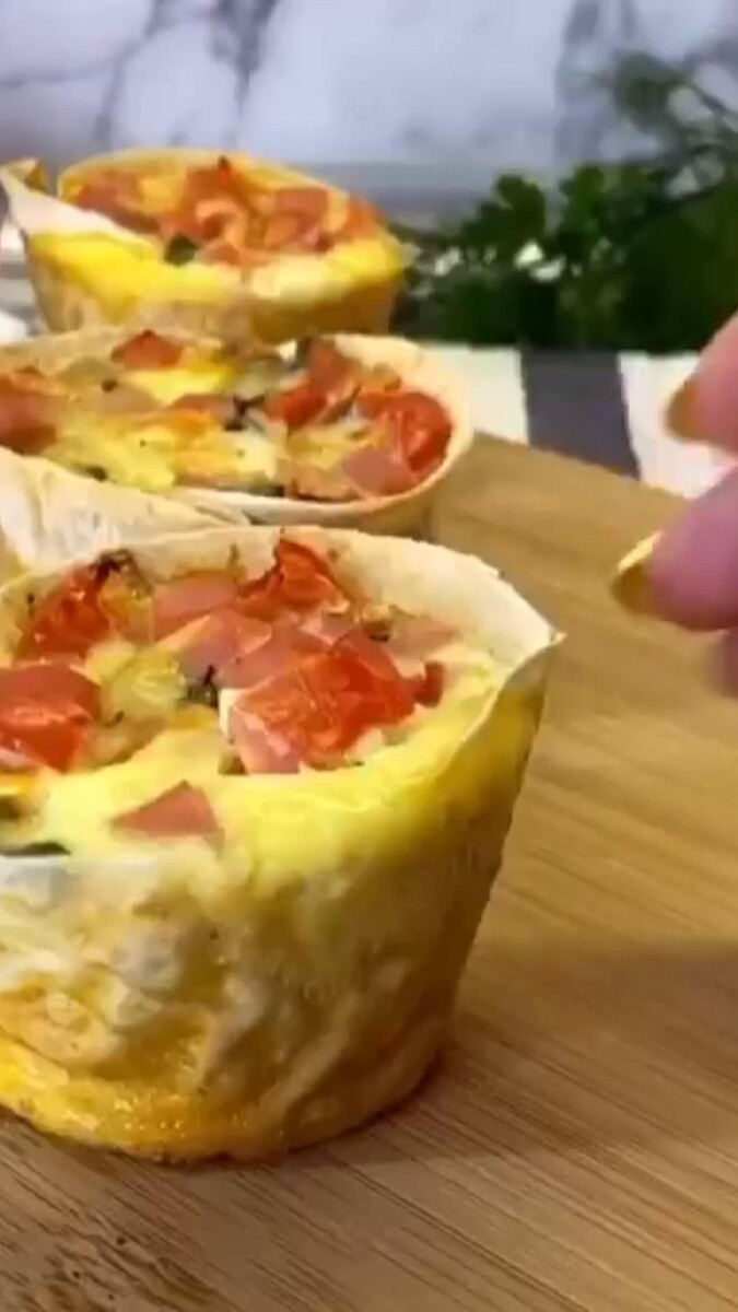 2. Выпекайте при температуре 180°C около 20-30 минут. Ориентируйтесь на свою духовку. Кексы готовы, когда яйцо полностью схватится (затвердеет), а края лаваша и верхушка с сыром станут красивыми, румяными и поджаристыми.