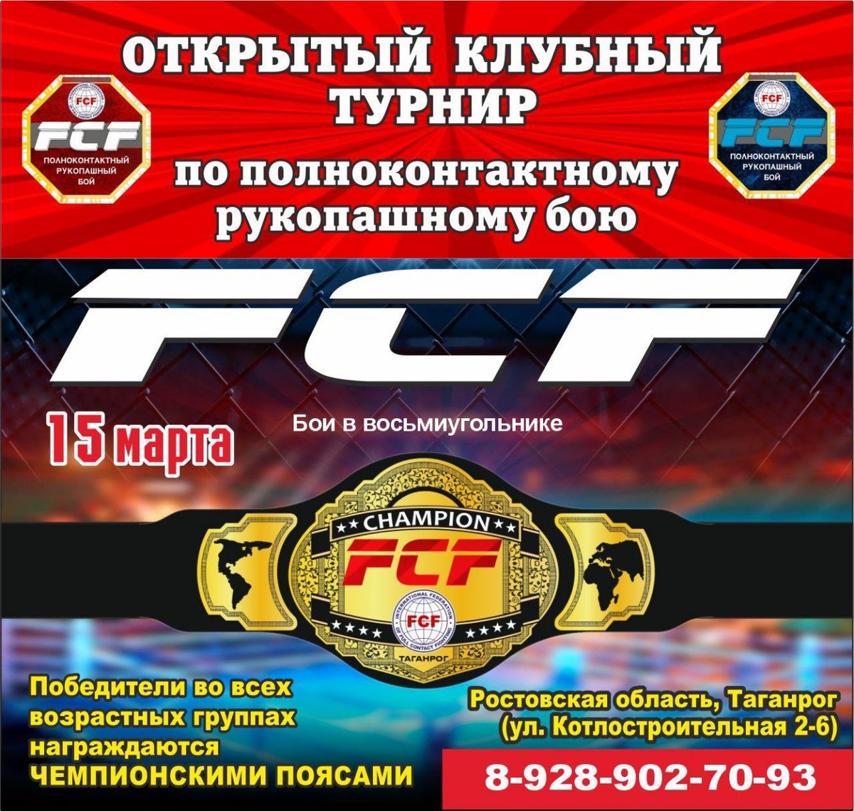 15 марта 2026 г. в г. Таганрог состоится открытый Клубный Турнир IF FCF "Школа Магдиева" по полноконтактному рукопашному бою FCF.