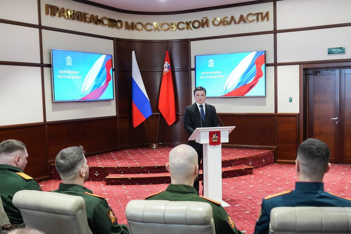 , безопасность и развитие Подмосковья — участникам и ветеранам СВО, врачам, спасателям, представителям соцсферы. Особая благодарность — нашим бойцам, кто служит на передовой, выполняет сложнейшие задачи, защищая страну. В их числе замкомандира роты Юрий, стрелок Александр, операторы FPV-дронов Богдан и Никита. Вручил им ордена «За доблесть и мужество». Орден Преподобного Сергия Радонежского вручил Юрию Лысенкову — руководителю Рузского отделения Ассоциации ветеранов СВО и лауреату премии «Мы рядом. Доброе дело». Кавалер Ордена Мужества Виктор Дядюра из Щелково отвлек на себя противника и тем самым спас жизни товарищам. После возвращения с фронта проводит встречи с молодежью, создал объединение «Штурмовик». Медаль ордена «Родительская слава» вручил Сергею Константинову — участнику СВО и отцу четырех детей. Медаль Луки Крымского вручил Леониду Толкачеву из Химок, который спас более 300 пациентов в Мариуполе и отработал 700 часов в «красной зоне» в пандемию. Хирург Игорь Игнатчик из Ду