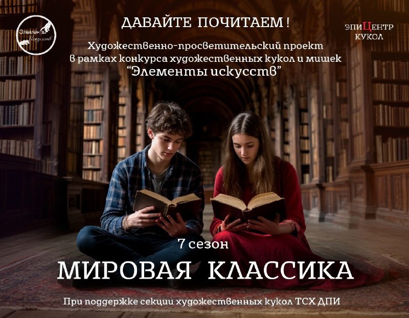 "Давайте почитаем! Мировая классика" - конкурс художественных кукол и мишек "Элементы искусств"!