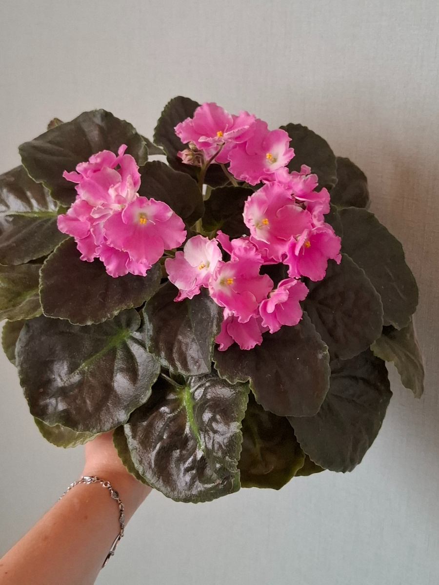 Каждый новый сорт — как маленькая победа. Новый оттенок, другая форма лепестка, махровая шапка, рюши, фантазийные крапинки. Под лампами всё выглядело как мини-оранжерея. Аккуратные ряды, детки в контейнерах, взрослые кусты на фитиле — порядок, система, красота.