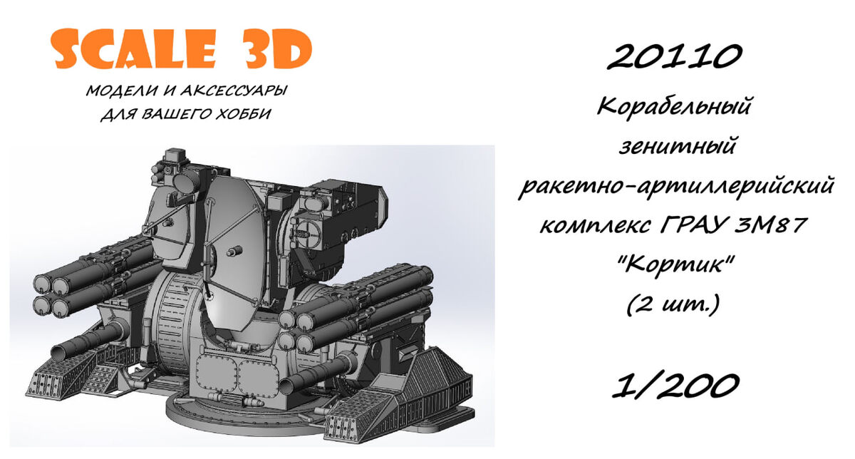 20110 Корабельный зенитный ракетно-артиллерийский комплекс ГРАУ 3М87 "Кортик" (2 шт.), масштаб 1/200.