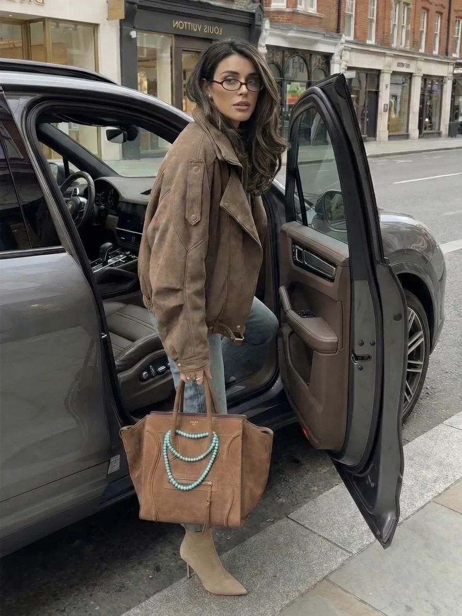 Коричневый замшевый бомбер — это про комфорт и визуальную дороговизну. Шоколадный оттенок сейчас на пике популярности, и неудивительно: он добавляет образу глубины, легко комбинируется с базовой гаммой и выглядит гораздо интереснее привычного чёрного. Модель с поясом и карманами — настоящий подарок для поклонниц стиля old money и кэжуал-эстетики. Замша премиум-качества мягко облегает, создавая эффект второй кожи, но при этом держит форму благодаря продуманному крою. Коричневый идеально дружит с белым, джинсовой тканью, бежевым и даже яркими акцентами. Эта куртка станет вашим любимым спутником в межсезонье: она согреет прохладным вечером и добавит образу уюта. Почему стоит купить: Арт: 804283931