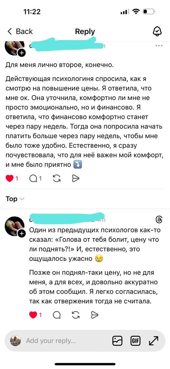 Не могу не поделиться с вами обсуждением в Threads 🧵 темы повышения цены, интересные комментарии оставила эта девушка