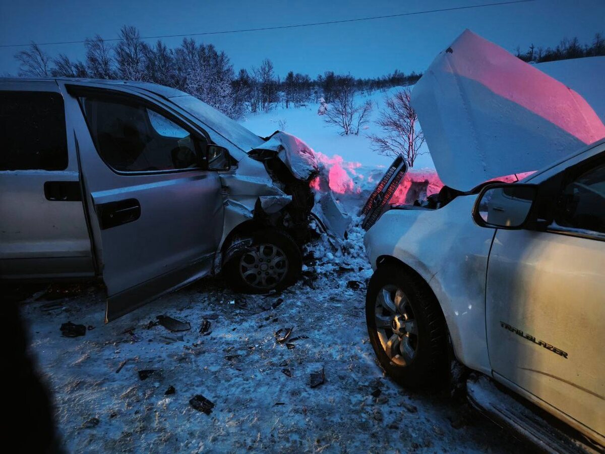 20 февраля в 17.39 по номеру 112 поступило сообщение о серьезном ДТП на 21 км автодороги Кола-Серебрянские ГЭС. Там произошло лобовое столкновение автомобилей «Chevrolet» и «Hyundai Starex». По информации Управления по ГОЧС и ПБ Мурманской области, на месте происшествия для ликвидации последствий аварии работал дежурный караул 20-й пожарной части Кольского филиала ГПС. В результате этого ДТП пострадало шесть человек, все были госпитализированы. Сотрудники ГАИ Мурманской области устанавливают причины происшествия. Фото: Управление по ГОЧС и ПБ Мурманской области.