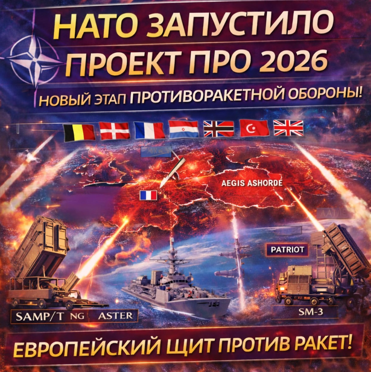 Его участниками стали Бельгия, Дания, Франция, Нидерланды, Норвегия, Турция и Великобритания. Проект напрямую увязан с решениями саммита НАТО 2025 года в Гааге и рассматривается как практический шаг по усилению европейского сегмента ПРО. Речь идёт не о создании «с нуля» отдельной системы, а о наращивании уже существующей многоуровневой архитектуры ПВО/ПРО (Integrated Air and Missile Defence), базирующихся на возможностях ВС стран НАТО, в т.ч. их ВВС. Союзники договорились совместно разрабатывать и закупать РЛС, ракеты и системы управления, которые будут встроены в общую сеть NATINAMDS (интегрированная система ПВО/ПРО НАТО под руководством AIRCOM). Это означает усиление возможностей обнаружения и доступных средств перехвата в рамках единого оперативного управления. По характеру задач проект ориентирован на отражение угроз со стороны ракет малой и средней дальности. Фокус остаётся на европейском ТВД — защите территории союзников, инфраструктуры и маршрутов переброски войск от МРАУ. Вну