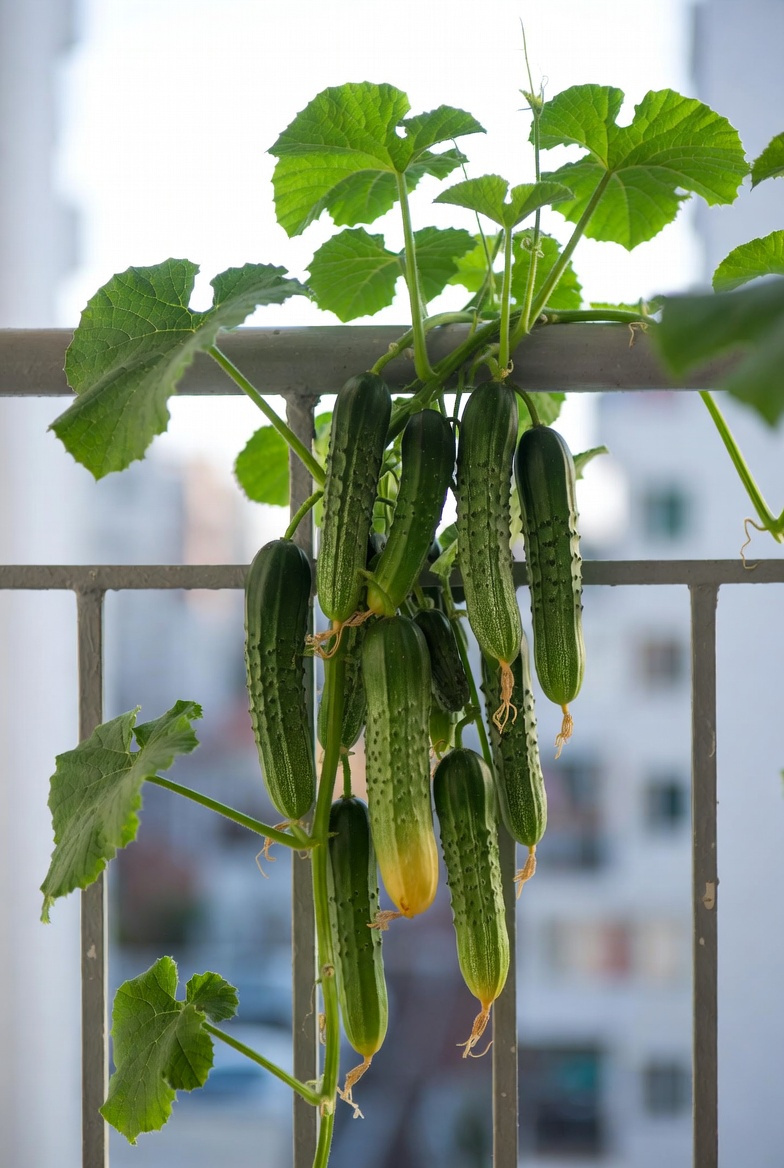 Свет. Огурцы любят солнышко, но наши балконные сорта специально выведены, чтобы и в полутени расти. Если совсем темно, можно повесить фитолампу — сейчас они красивые, балкон не портят.