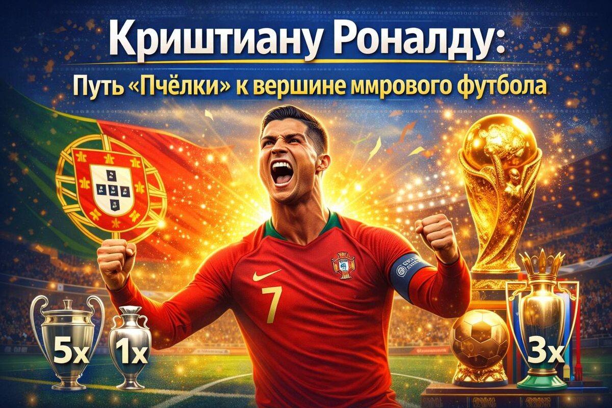 Криштиану Роналду доказал, что даже мальчик из бедной семьи может стать лучшим в мире. Его карьера — это история о том, как «Пчёлка» превратилась в одну из самых ярких звёзд в галактике мирового спорта.