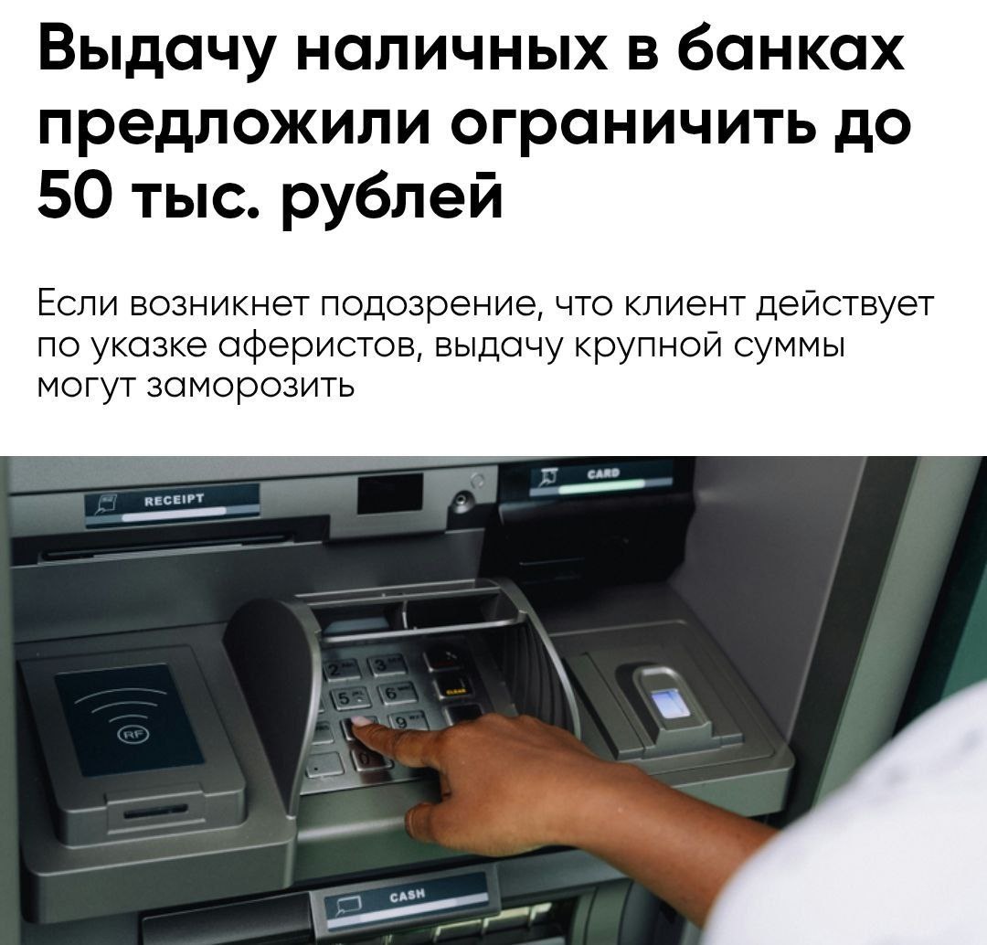 Если сотрудник заподозрит, что клиент действует под влиянием мошенников, сумму выдачи предложено временно снизить до 50 тысяч рублей. С инициативой выступили представители банковского сектора и МВД РФ #сми 📱ПоДПиСаТьСя На КаНаЛ 📱ДоСТуП К ЭКСКЛюЗиВу