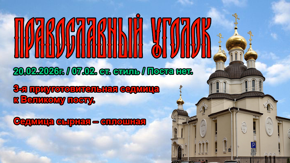 3-я приуготовительная седмица к Великому посту. Седмица cырная – сплошная. День памяти Преподобного Парфе́ния Лампсаки́йского, епископа. День памяти преподобного Луки Елладского, отшельника. День памяти Святых 1003мучеников, в Никомидии пострадавших. День памяти Священномученика Алекса́ндра Талызина, пресвитера. День памяти Священномученика Алекси́я Троицкого, пресвитер.