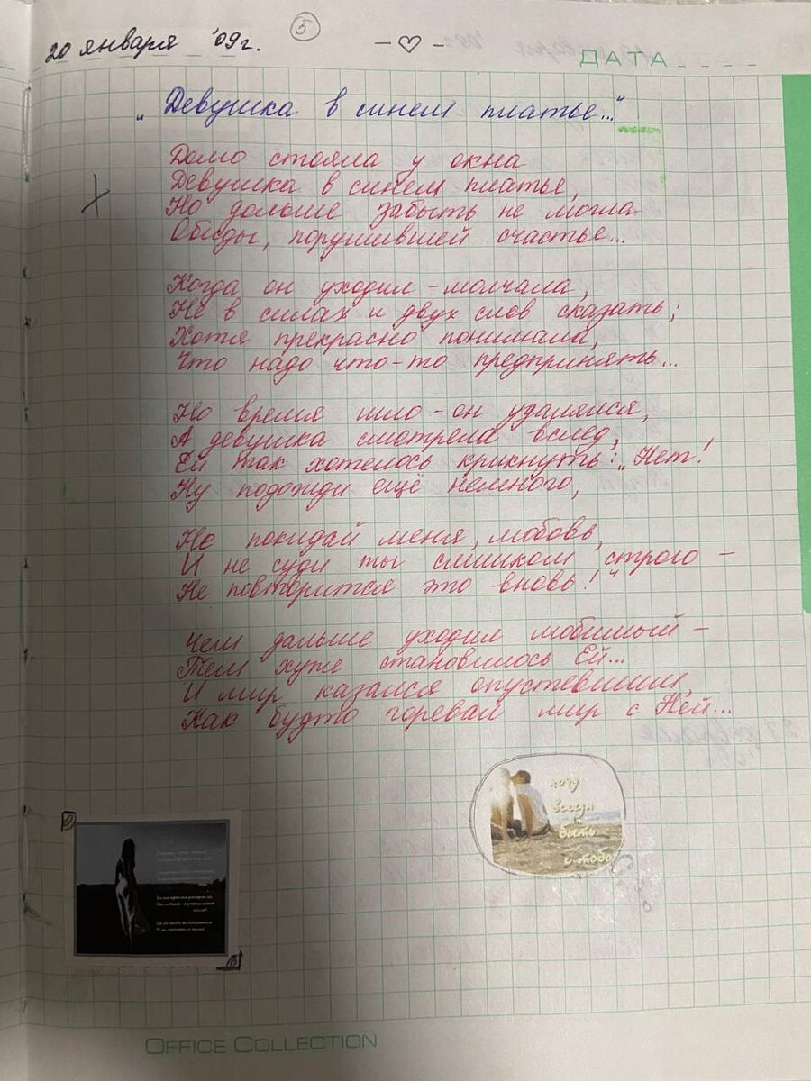 Сейчас значительно реже — если вдохновение нахлынет, могу на праздник написать или годовщину.😁 А в юности у меня была целая тетрадь типа рукописной книги (она потрёпана, подклеена, но жива). Там я писала красивыми вензельными разноцветными ручками, распечатывала картинки, которые ярко иллюстрировали суть стихотворения (так видело моё сентиментальное подростково-юношеское восприятие). Конечно, там были и "посвящения бывшим". Ну а как без этого!?😂 Дневников тогда я не вела, к психологу не ходила, а пожаловаться подружкам — это не та терапия, согласитесь. Сегодня кое-что покажу. Забавно, что там есть несколько стихов, посвящённых мужу (тут рассказывала нашу историю знакомства длиной во всю жизнь и то, что со второй попытки отношений мы решили создать семью — и так бывает, как оказалось). Всю рукопись не покажу, там есть личное и что-то философско-забавное (сейчас я так это воспринимаю, а тогда мне ~17). Но есть стихи, которые мне особенно нравятся. Переведу свои "красивые вензеля" (