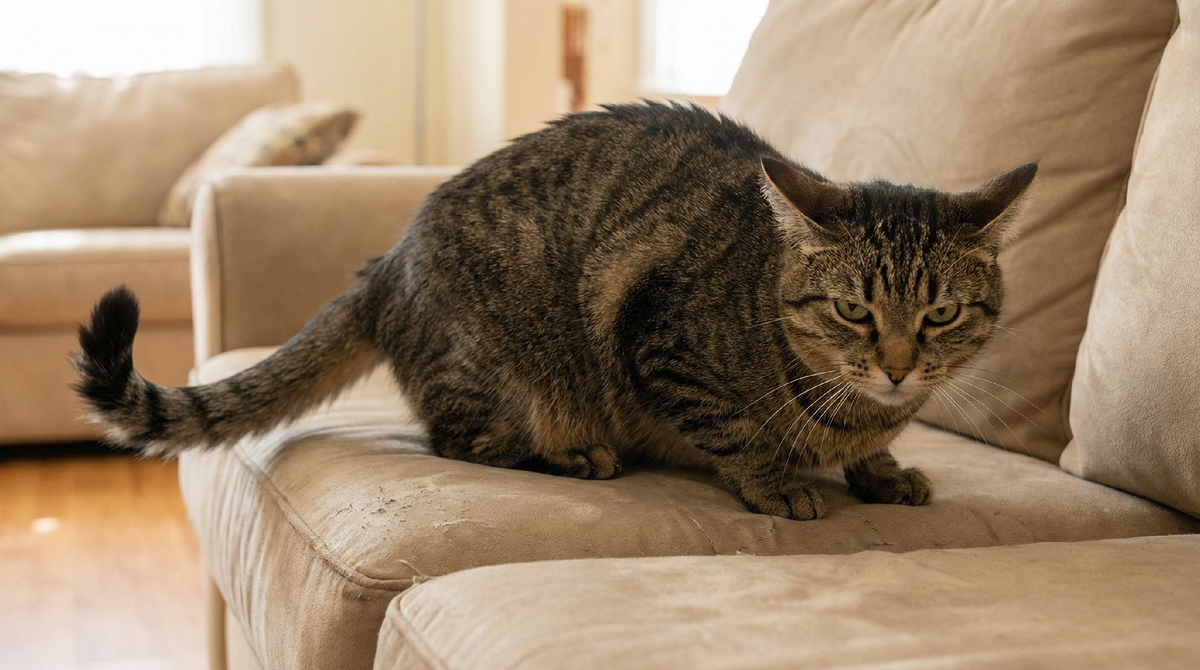 Кошка царапает — хозяин кричит, отталкивает, брызгает водой. Кошка царапает снова. Хозяин кричит громче. Кошка царапает ещё. Это не упрямство и не месть. Это разговор двух существ, которые не слышат друг друга. За двадцать лет я видела десятки котов с репутацией «агрессивных» — и почти всегда за этим стояла одна простая вещь: хозяин пытался остановить поведение, не разобравшись, зачем оно вообще происходит. Как только разбирались — проблема уходила сама. Царапанье как игра и царапанье от раздражения — это разные вещи, которые требуют разного ответа. Молодая кошка до двух лет царапает потому что охотится. Движущаяся рука, ноги под одеялом, пальцы, которые дразнят — всё это добыча. Она не злится. Она играет так, как умеет. Наказание здесь не работает — охотничий инстинкт сильнее любого запрета, и кошка просто не понимает, за что её ругают. Взрослая кошка царапает, когда её трогают дольше, чем она хочет. У каждой кошки есть порог — у одной это пять минут поглаживания, у другой две. Сначал