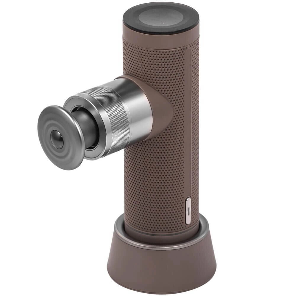 Теперь перейдем к самому массажеру. Bork — бренд премиум-класса, и D701 GG не исключение. Корпус из пластика, металла и силикона — прочный, приятный на ощупь, не скользит. Весит мало, рука не устает. А дизайн? Стильный коричневый с золотом — выглядит как гаджет из будущего.