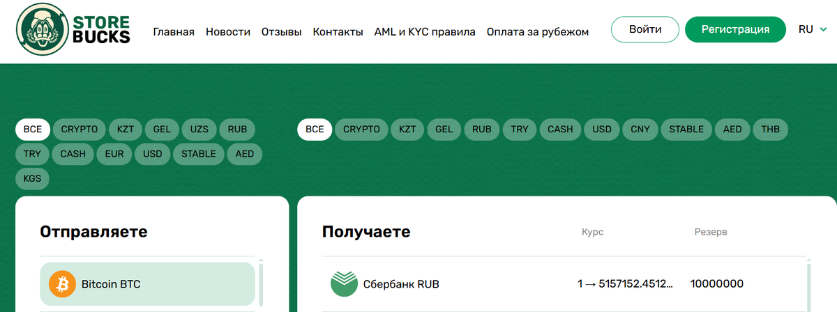 StoreBucks — это онлайн-обменник криптовалют, запущенный в 2023 году. Платформа позиционирует себя как удобный и быстрый сервис обмена цифровых активов на фиатные деньги. На первый взгляд всё выглядит прилично: стильный сайт, широкий список поддерживаемых направлений (свыше 450+), возможность вывода на карты крупных российских банков — Сбербанк, Тинькофф, Райффайзен и многих других.