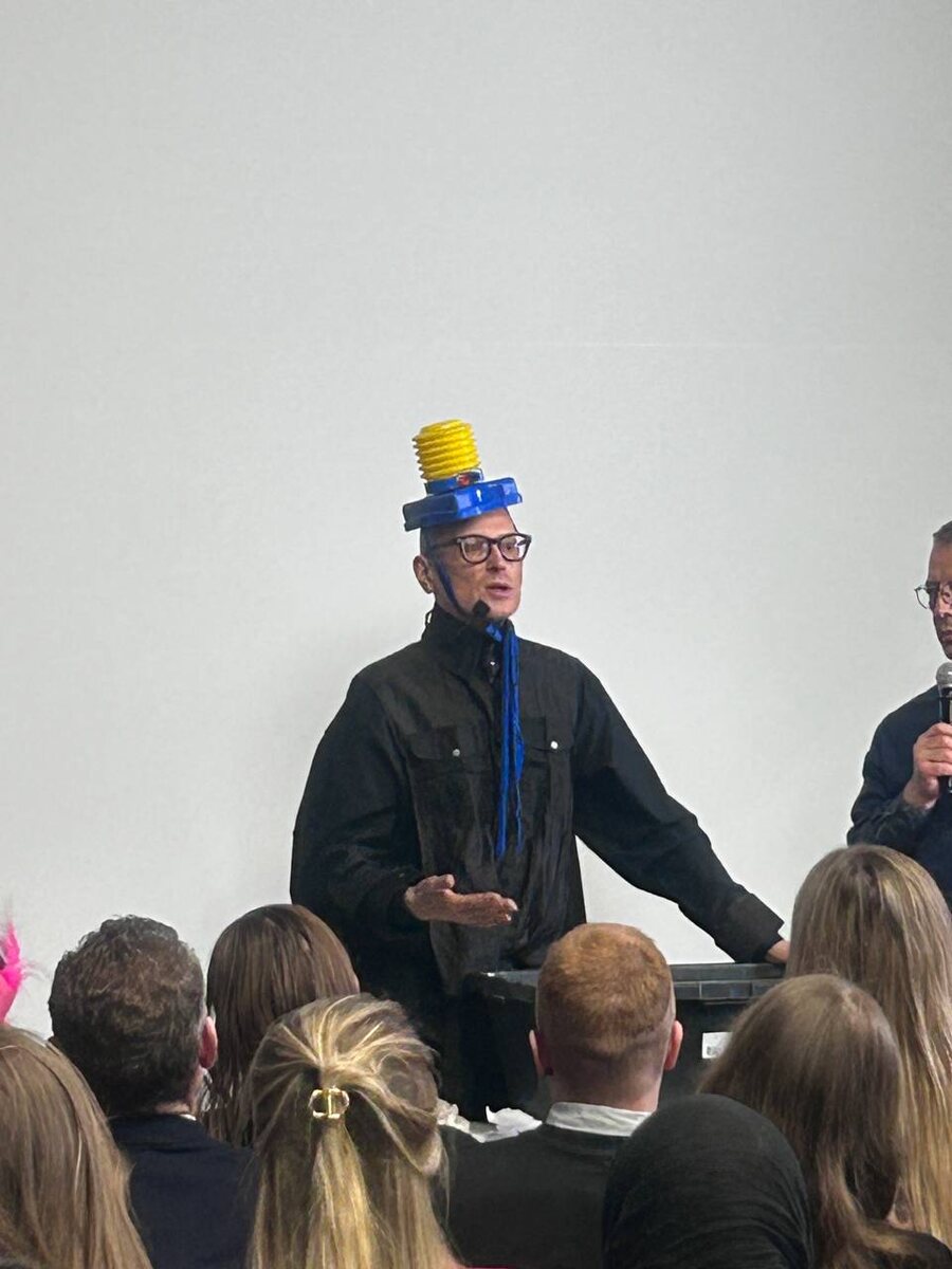 ?" И я бы покривила душой, если бы начала с ним спорить. Но до чего же милое это его "ку-ку"! На этот вечер Андрей пообещал стать нашим арт-терапевтом. И кажется, что у него это получилось. Для начала он посоветовал смотреть на него как на чудака. Что-то полезное взять себе, а отрицательное отринуть. И обязательно измениться после этой встречи. Делюсь тезисами. - Все, что со мной произошло, то, как я выгляжу, это результат моего любопытства. - Нужно попробовать все. Может быть, из вас получится прекрасный крокодил Гена или Чебурашка? Может быть, прекрасный апельсин? - Все, что вы видите, не факт, что это то, что вы видите. А если вы чего-то не видите, это не значит, что это отсутствует. - Я вас уверяю, такой бред мог только я придумать! - Самый страшный контрольный педагог - это ты сам. - Творческую натуру ошибки учат лучше, чем успех. Они делают тебя творчески настороженным. - Сделайте трудность, которая вам не нужна, удовольствием, которое доставляет вам наслаждение. Пом
