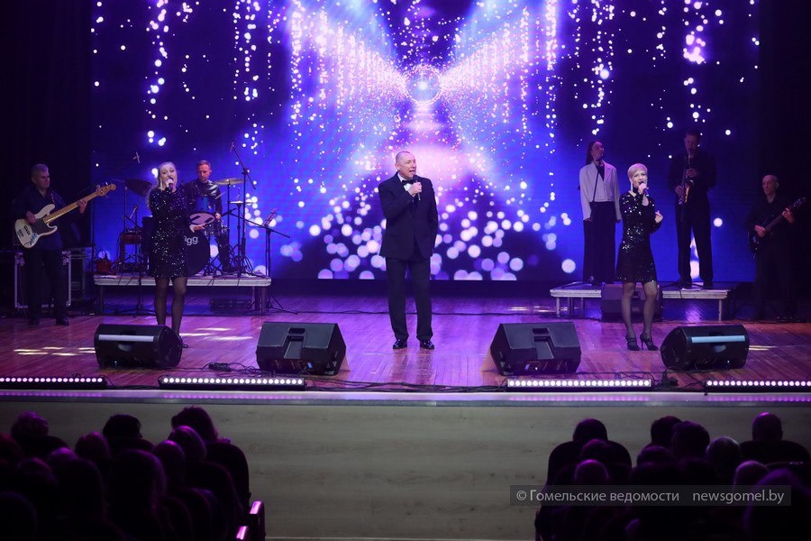 Со сцены Гомельского городского центра культуры звучали хиты, знакомые и любимые несколькими поколениями слушателей, в исполнении вокально-эстрадной группы «Трилогия».
