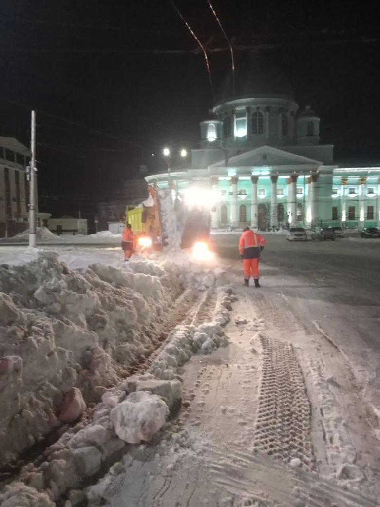 Работы по уборке снега продолжаются и поздно вечером