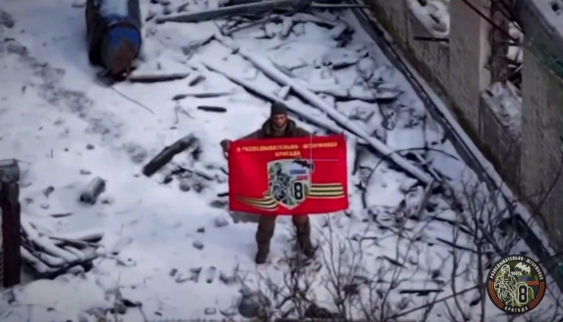 Флаг 8-й бригады ВС РФ поднят над освобожденной Миньковкой