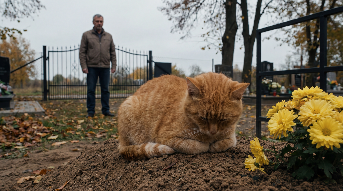 Утром, до работы. Вставал на час раньше, ехал на кладбище. Я больше не закрывал окна, кот уходил сам, встречал меня у могилы.