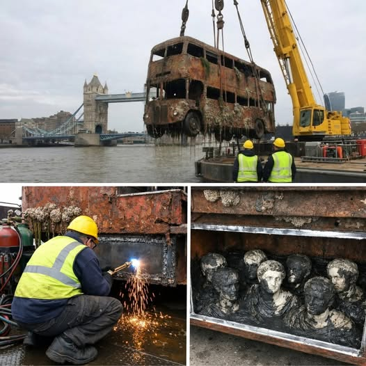 Лондонский двухэтажный автобус был поднят из Темзы, экипаж открыл багажное отделение и вызвал службу спасения 999