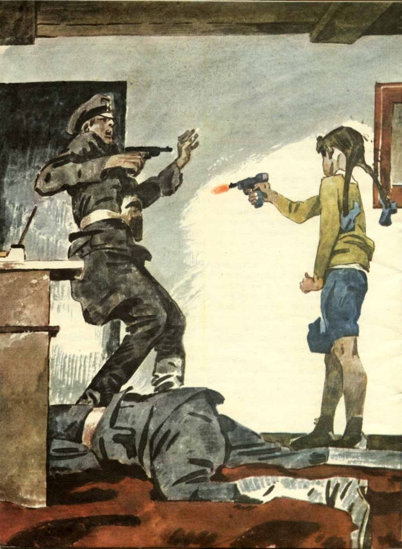 Девочка с косичками и бантиками, которая прямо на допросе в гестапо стреляет из парабеллума в двух здоровых фашистских дядь — незабываемый, конечно, образ