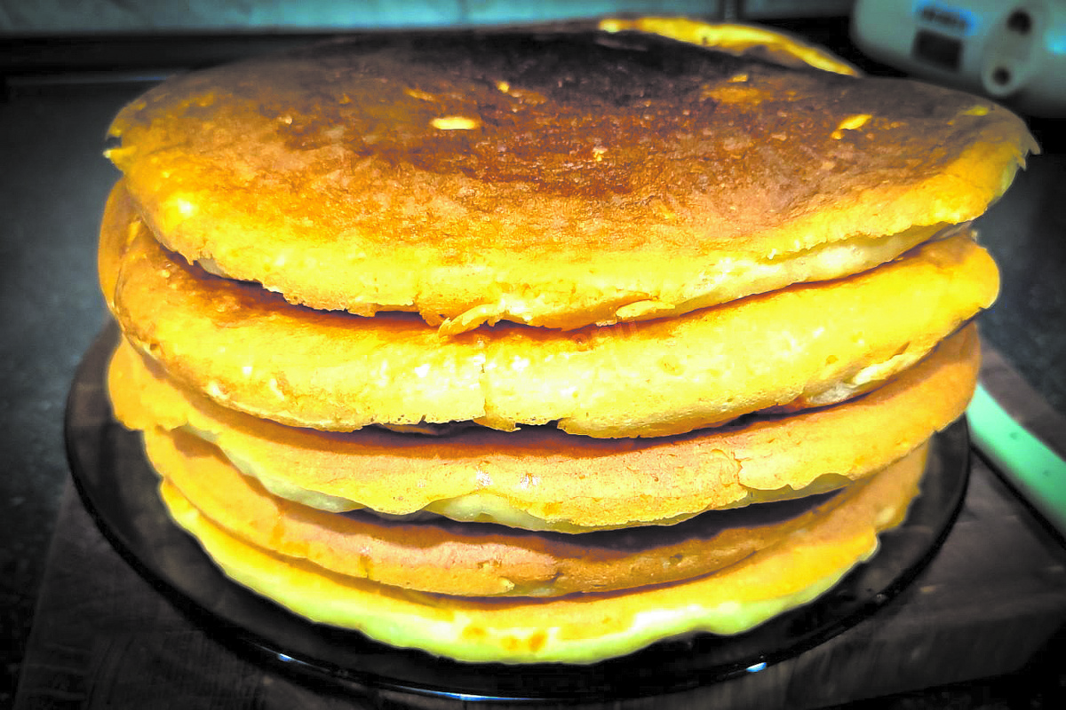 Надоело мучиться с тонкими блинчиками, которые так и норовят порваться? Хочется испечь стопку сытных, высоких блинов, чтобы можно было макать их в сметану или варенье? Ловите рабочий рецепт от нашего читателя Александра. Его блины на манке и дрожжах всегда получаются пышными и очень вкусными. Молоко - 1 л, мука - 5 ст. (около 800 г), манка - 1 ст., яйца - 5 шт., дрожжи сухие - 1 пакетик (11 г), сахар - 5 ст. л. (регулируйте под себя), соль - 1,5 ч. л., раст. масло - 0,5 ст. (в тесто), слив. масло - 70 г (для смазки готовых блинов). Зачем нужна манка? Манная крупа вбирает в себя влагу и набухает, не давая блинам опадать после жарки. Смешайте её с 300 мл тёплого молока и оставьте на 10 минут. На всех этапах молоко должно быть тёплым (около 35-40°С), чтобы дрожжи активно работали. После замеса дайте тесту подойти, затем перемешайте и дайте подойти снова. Это ключевой момент для насыщения теста кислородом. Он обеспечит пористую структуру. Яйца и масло вводите только после того, как тесто х