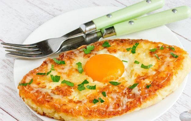 🫔 📖 Ингредиенты: - Творог - 150 г. - Яйцо - 1 шт. - Мука - 30 г. - Сыр - 30 г. - Соль - по вкусу - Масло - для жарки - Зелень - для подачи 🧑🏻🍳 Приготовление: 1. Отделяем белок от желтка. В белок добавьте творог, муку, посолите по вкусу. Всё тщательно перемешайте. 2. Выложите массу в сковородку в виде лодочки. Пока греется сковородка, натрите сыр. 3. Жарьте под крышкой с каждой стороны по 3-5 минут. 4. Выложите на «лодочку» сыр. 5. Вылейте в центр желток и оставьте ещё на пару минут под крышкой. Желток должен немного схватиться. Подавайте с зеленью. @Живёт же Беларусь!