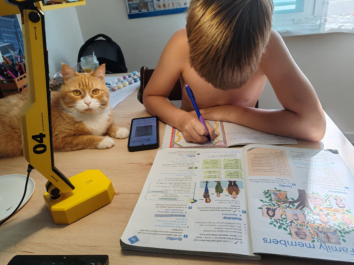 Доброе утро всем кто меня ещё читает. Сегодня суббота, надо бы выспаться, но нет, я как всегда проснулась в шестом часу,и вот это бесит. Мои домашние все спят, ну кроме кота, он всегда ходит за мной. Он сытый, просто такая привычка, даже извините в туалете готов меня караулить.Но караулит он не только меня, с сыном вот уроки любит делать.