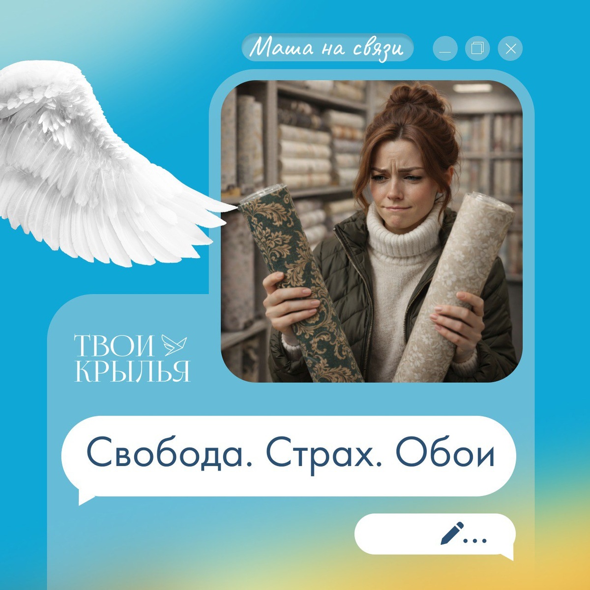 Весна. Новая жизнь. Все дела. Муж: — Мне всё равно, выбирай на свой вкус. Дочка: — Только не с цветочками, умоляю. Отлично. Свобода. Самостоятельность. Взрослая женщина, 30 лет (ладно, больше). Что может быть проще? Через три часа я всё ещё стою в строительном и понимаю: проще родить, чем обои выбрать. Эти слишком яркие — соседи подумают, что у нас эмоциональная нестабильность. Эти слишком светлые — мама говорила: «Быстро запачкаются». Эти, наверное, мужу не понравятся. Хотя он сказал, что всё равно. Но вдруг не всё равно? Эти дешёвые — значит, я экономлю на семье. Эти дорогие — значит, я транжира… АААА!!!! 😵 Я понимаю, что это просто обои. Но в моей голове уже: *экзистенциальный выбор цвета собственной судьбы*. Чувствуя себя полной дурой, пишу психологу: — Наверное, это не очень твоя стезя… но помоги обои выбрать. А? В ответ прилетает смайлик. И текст: — Машенька, просто возьми те, которые ТЕБЕ нравятся. Не понравятся — переклеишь. И тут меня накрывает. *Как это — просто?