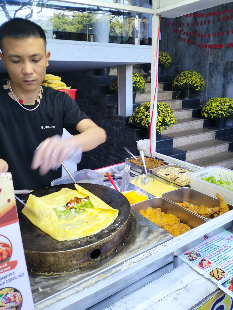 Идем мы вчера вечером по набережной, дышим морским воздухом, и вдруг чувствуем... знакомый запах! Кто-то совсем рядом жарит блинчики. Только вот начинки здесь, конечно,