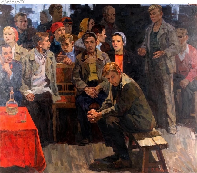 Богачёв Пётр Никифорович (11. 06. 1921, д. Александровка Тульской губернии - 2003, Москва). «Товарищеский суд». 1972 год. Холст, масло; 170 x 200 см.; (Рыбинский государственный историко-архитектурный и художественный музей-заповедник). Источник: Художники СССР 1950-1990 | ВКон