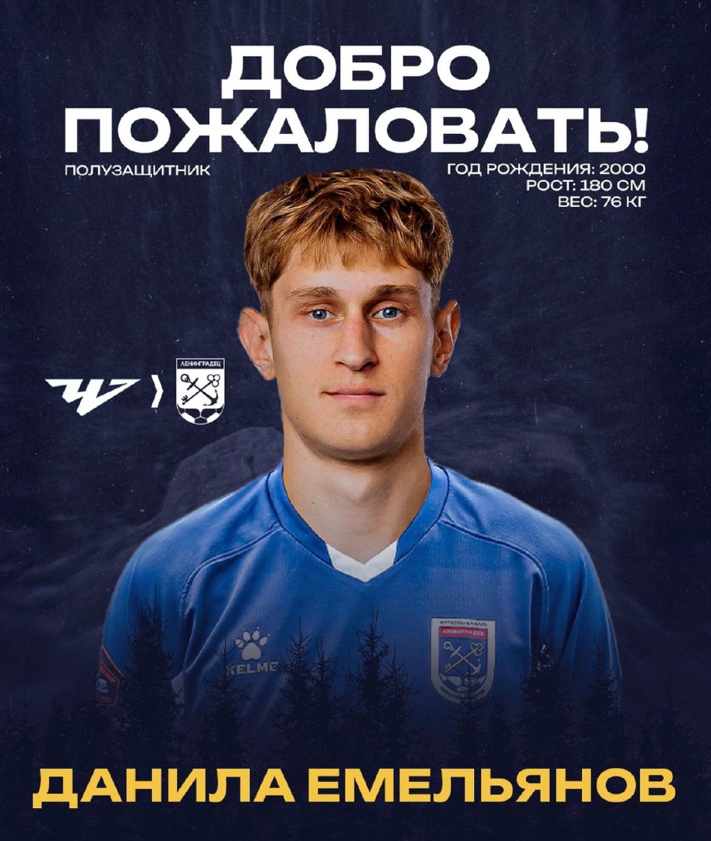 🚨 Полузащитник Данила Емельянов стал игроком футбольного клуба «Ленинградец