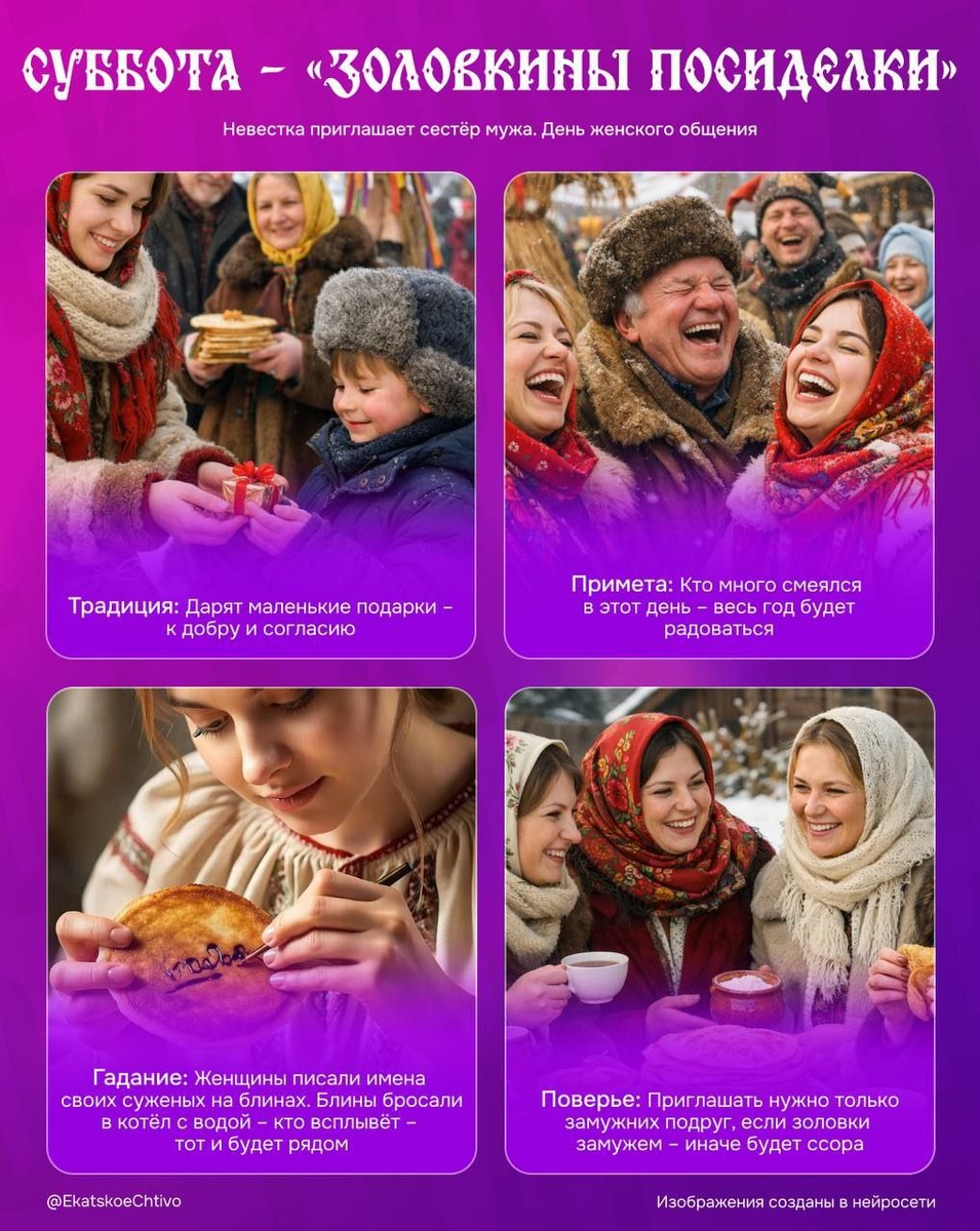 В этот день молодая жена приглашала сестер мужа, дарила подарки и щедро угощала. Одинокие девушки гадали на суженого и обсуждали возможных женихов, замужние — беседовали о быте и хозяйстве. Если еще не успели посидеть с подругами, то сегодня самое время ☕️ 🫡 Подписаться | Прислать новость | Дать «буст» | Мы в МАХ