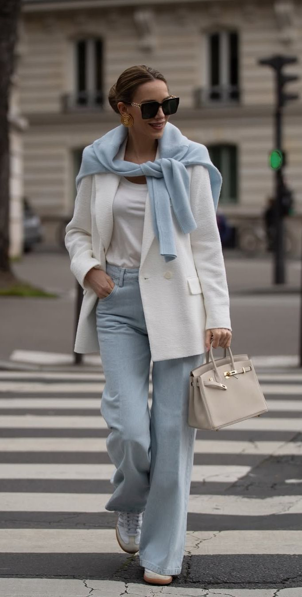Белый + голубой + бежевый: когда хочется выглядеть «дорого, но без усилий»