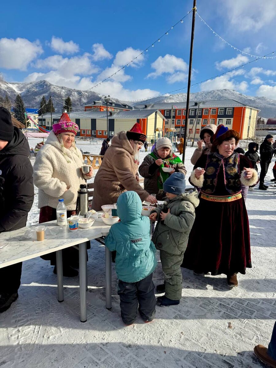 На этом празднике показали культуру разных народов. Друг друга угощали блюдами русской, алтайской и бурятской кухни, состязались в народных играх, выступали с душевными песнями. На морозе грелись горячим чаем и кочо, сообщает «Сельская новь».
