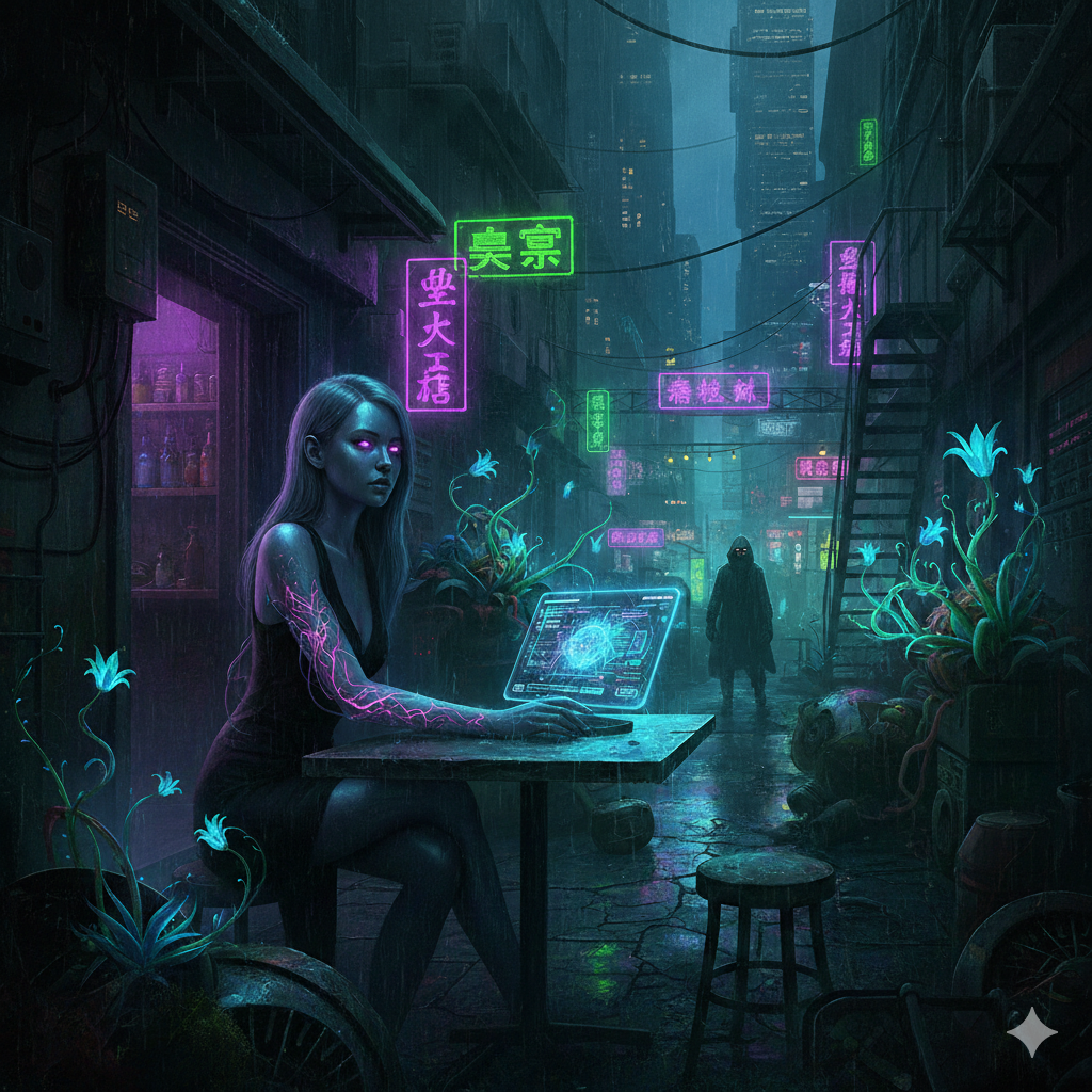 Представьте: вы сидите в полутёмном баре где‑то в трущобах Нео‑Шанхая. Воздух пахнет озоном и чем‑то сладким — то ли биолюминесцентными цветами в кадках, то ли синтетическим феромоном из распылителя. За соседним столиком — девушка с кожей цвета лунного серебра. Не краска — генетическая модификация. Её зрачки пульсируют в такт музыке, а на запястье мерцает узор: не татуировка, а живая биосхема, реагирующая на пульс. Это и есть биотехнопанк. Не просто жанр. Это дыхание будущего, которое уже касается вашей шеи. Биотехнопанк — это не про «крутые технологии». Это про переосмысление самого понятия «быть человеком». Здесь: Но главное — это эстетика. Биотехнопанк не кричит, он интимно шепчет. Он показывает: Не нужно ждать будущего — оно уже мерцает на страницах книг и экранах: Хотите не просто понять, а почувствовать этот жанр? Попробуйте: Биотехнопанк пугает не технологиями. Он пугает правдой. Потому что: Этот жанр — не прогноз, а зеркало. Он отражает наши страхи и желания: Биотехнопанк — эт
