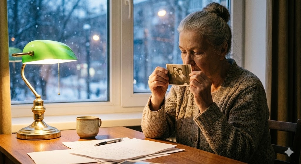Вера достала из ящика стола фотографию. Чёрно-белую, смятую по краям. Два лица, прижатые друг к другу. Её — молодое, с короткой чёлкой. Его — узкое, с тёмными волосами.
