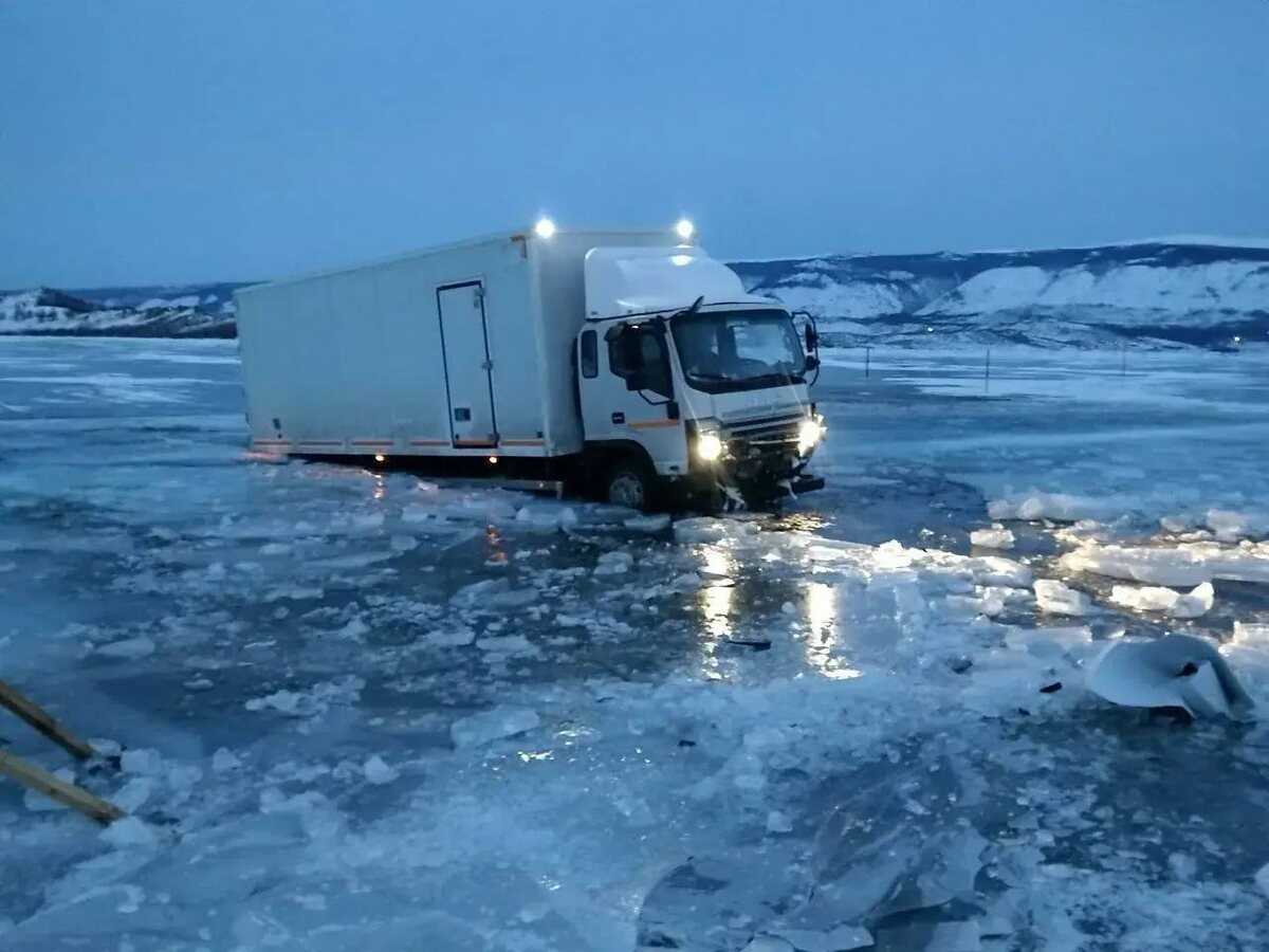 Водитель ехал по неоткрытой официально ледовой дороге.