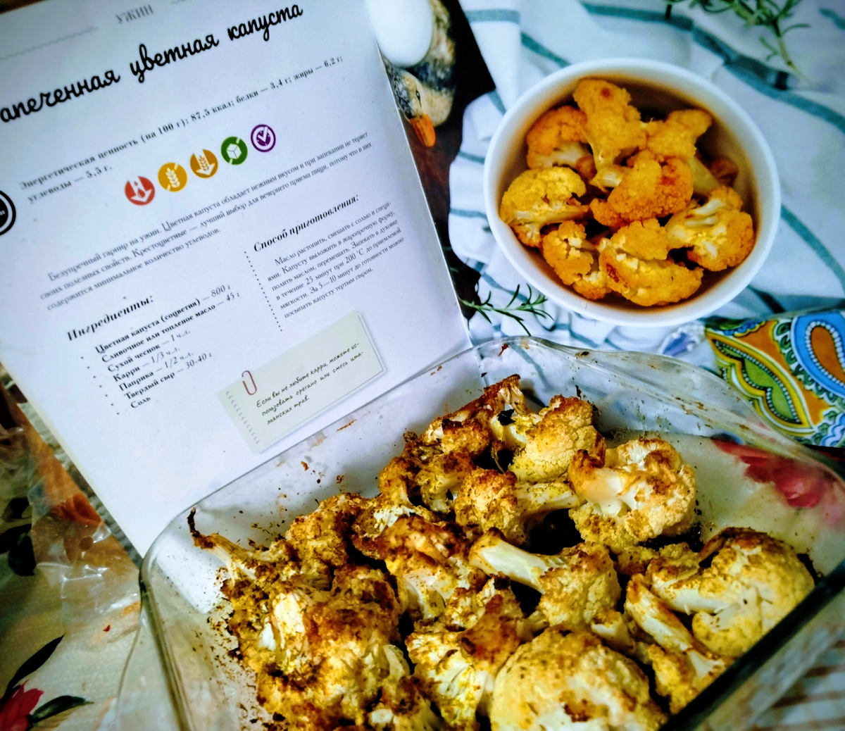 Сегодня всё намного проще, чем в прошлый раз мы с ней обошлись. Просто заливаем соцветия цветной капусты растопленным сливочным маслом с солью и специями и в духовку! Сочно,ароматно, пикантно! То что надо! По материалам кулинарной книги "Осознанная кулинария" Д.Савельевой и Д.Третьяковой.