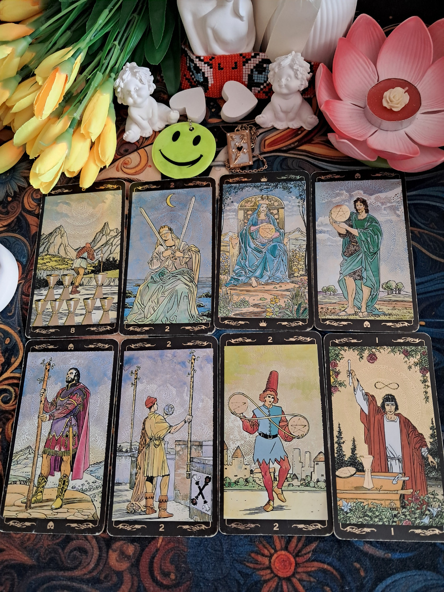 · В отношениях и творчестве – доверяй интуиции 2 Мечей и лёгкости 8 Кубков, чтобы не застревать в старом.