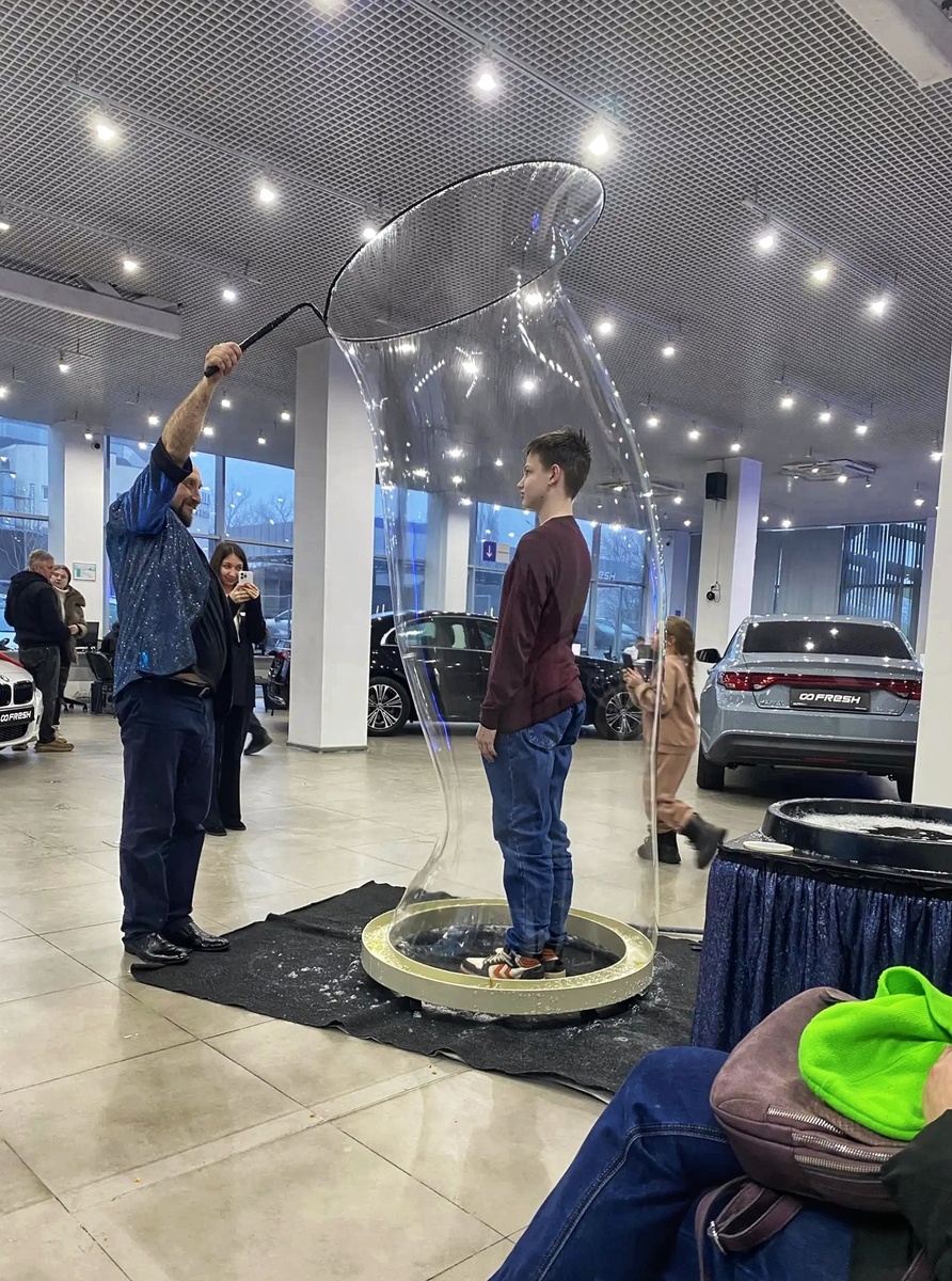 Представление длилось больше часа, ожидание никак не заканчивалось. Дети с радостью ловили мыльные пузыри, вскоре и зрителей поместили в пузырь. В помещении время от времени раздавался звон колокольчика, подкреплённый аплодисментами. А за окном уж совсем стемнело.