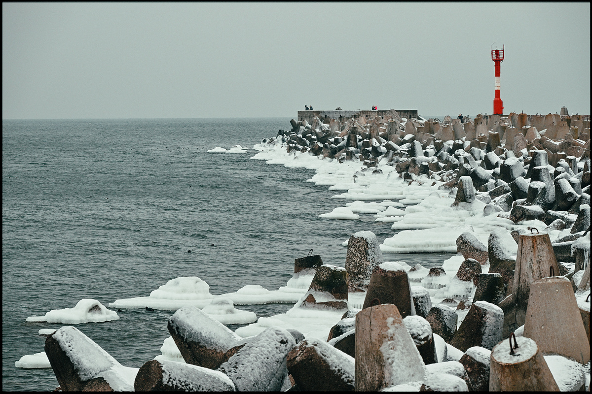 Если вы не чувствовали пронизывающий балтийский ветер в минус пятнадцать по Цельсию, вы не можете утверждать, что Балтика холодная, а ветра сильные. Опыт прохладного ветерка на пляже Янтарного — ничто, в сравнении с зимой образца 2026 года, напомнившей всем, что Природа может быть разной. Отправляемся в Балтийск в один из морозных дней, прогуляться по Северному молу и полюбоваться причудливыми нагромождениями тетраподов, залитых фантасмагорическими ледяными образованиями. Оно того стоило! Прогулка началась со знакомства с собакой, делавшей грустные глаза. Попытка покормить ее не увенчалась успехом. Девушка-продавец хот-догов сказала, что утром уже кормила собаку и она не голодная, что ее постоянно кормят. Так что не смотрите на глаза «Ваще никаддда не кормили» — это очередной трюк. Однако собака не обиделась на нас и сопровождала в течение всей прогулки, пока на горизонте не появился автобус с туристами и не отправилась искать новое «слабое звено» среди приехавших. Надо сказать, что