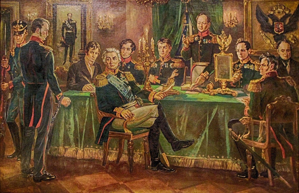 Средний возраст первых декабристов - 21 год, у всех членов уже был боевой опыт. Основатель "Союза" - 23-летний полковник Александр Муравьев. Вообще-то, к 1816 году в России существовало уже четыре тайных общества, ставивших своею целью изменение государственного строя: "Орден Русских рыцарей", кружок Владимира Раевского, "Священная артель" и "Семеновская артель". Последняя, созданная Сергеем Трубецким, Иваном Якушкиным и Сергеем Муравьевым-Апостолом, стала первой подобной организацией, деятельность которой была официально запрещена указом Александра I. В феврале 1816 года члены "Священной" и "Семёновской артелей" объединились в организацию, получившую название "Союз спасения". Правда, "Союз" в итоге распался, продержавшись чуть более года. Члены вдрызг разругались из-за прожектов будущего России. Уже в 1817 году организацию переименовали в "Общество истинных и верных сынов Отечества". Устав организации провозглашал главной ее целью уничтожение крепостного права и замену самодержавия