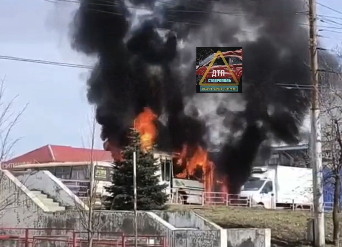 📍В Ставрополе на парковке магазина произошёл пожар, в результате которого сгорел автобус.