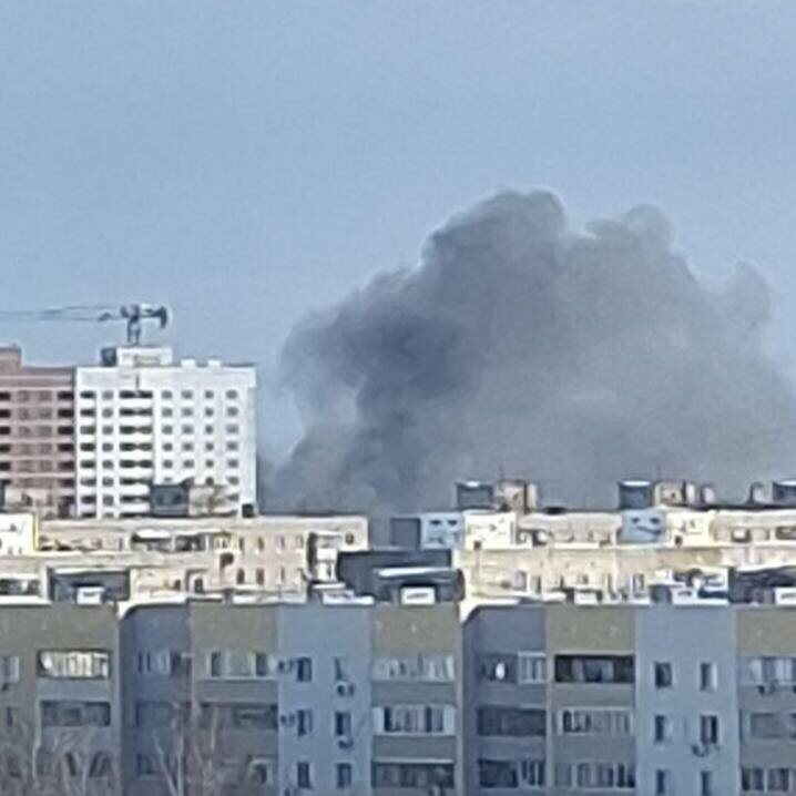 Тельмана. Дым виден издалека. Горит склад. На месте работают 14 сотрудников МЧС. ⠀