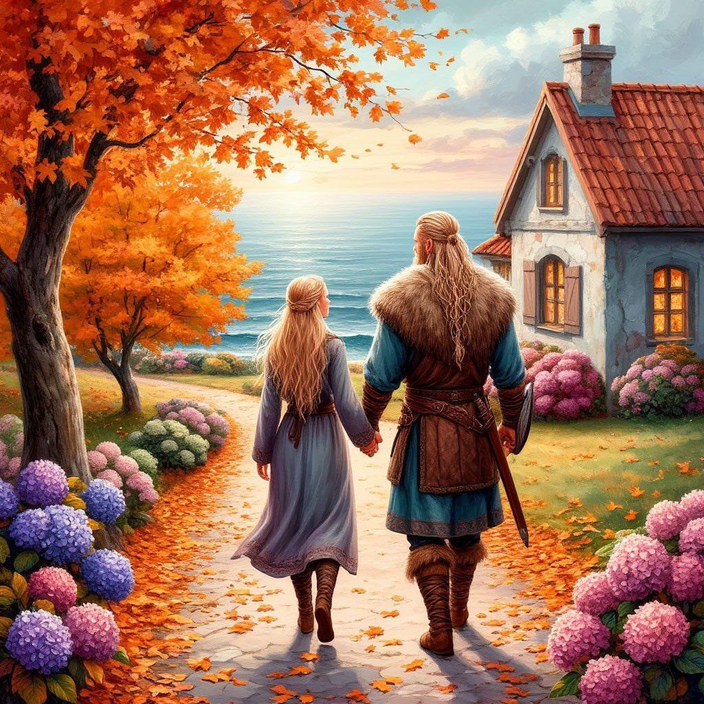 … Октябрьский день бережно сплетал и расплетал мужские и женские пальцы. Она и Викинг шли по осенней аллее к домику с гортензиями и видом на море. Там, на пороге вечности их ждало заплутавшее в безвременьи счастье.